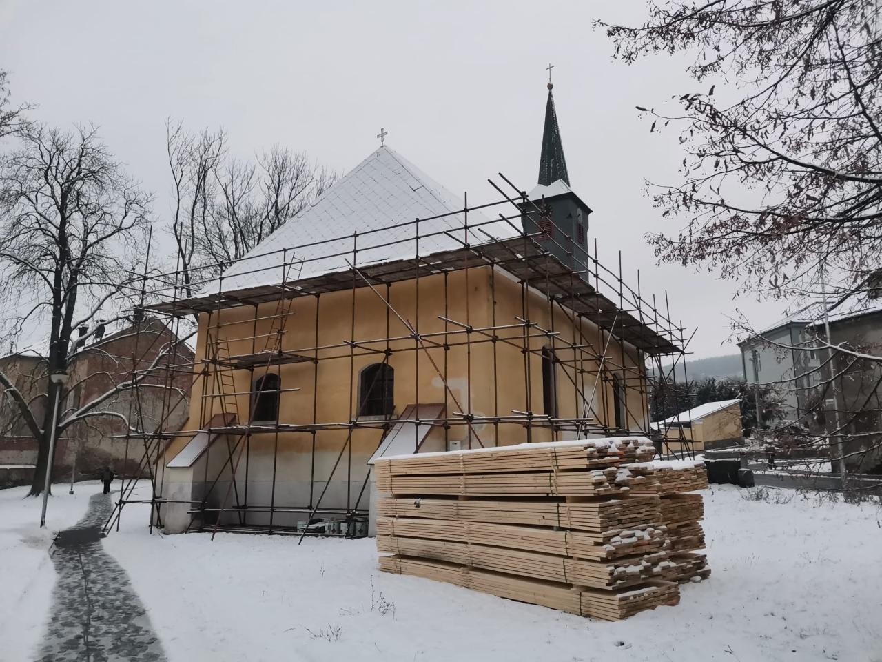 Odstartovaly práce na rekonstrukci střechy, dveří a kamenných portálů kostela Nejsvětější Trojice na Olomoucké ulici ve Šternberku